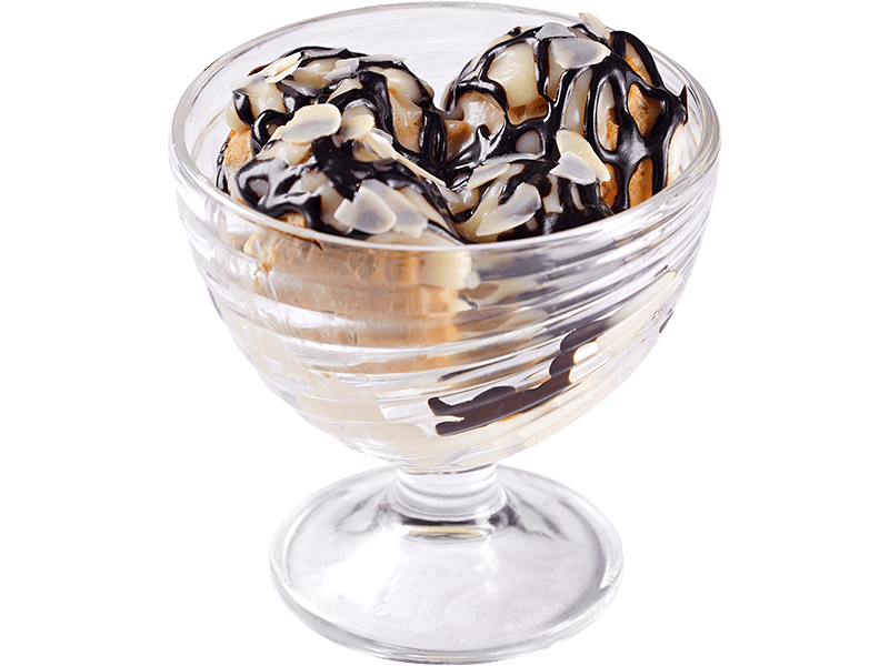 Мини-эклеры с заварным кремом, шоколадным соусом и миндальными лепестками